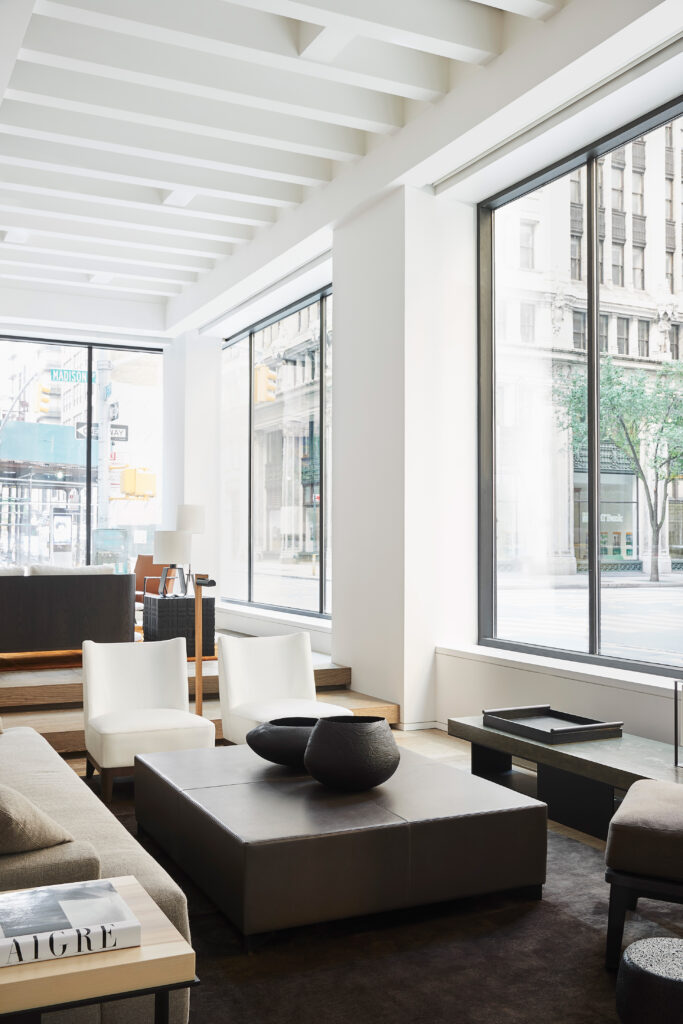 Au cœur de NoMad, quartier design et effervescent de New York, un showroom se déploie comme un intérieur. Du salon à la chambre, les espaces se succèdent et réinventent les codes de la Maison. Baignés de lumière, volumes sculpturaux et mobilier entrent en résonance avec les œuvres.